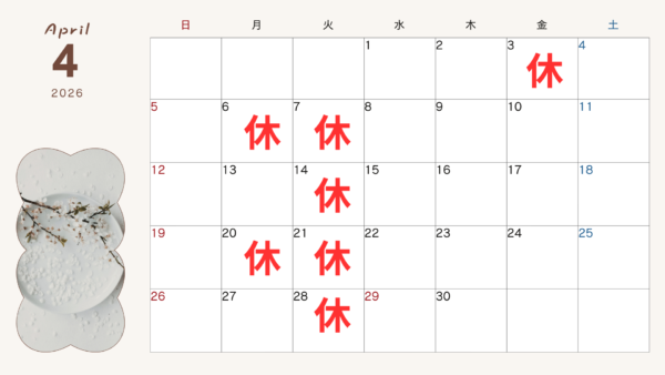 - 4月3日(金) ※都合により臨時休業とさせていただきます