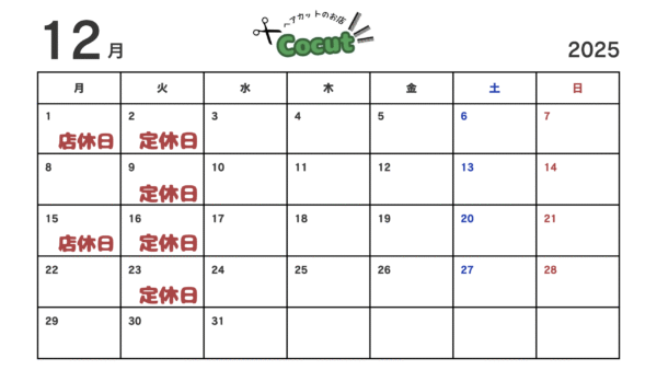 12月29日(月)・30日(火)・31日(水)は通常通り営業いたします。